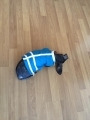風邪を引かれては困るので、洋服を着せました。